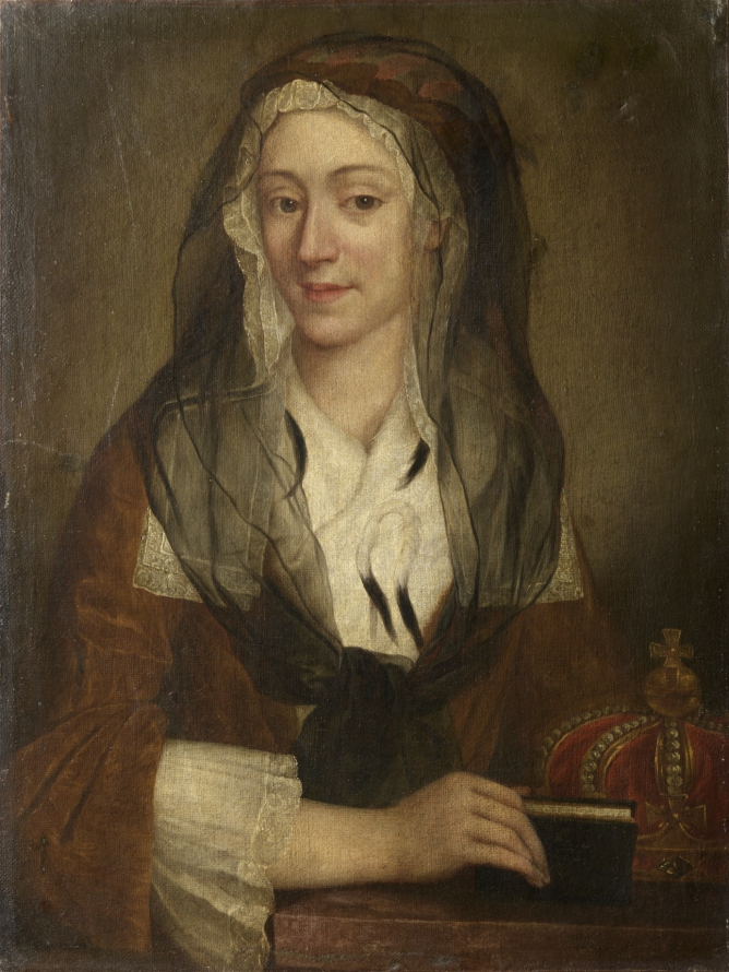 This portrait was produced during the two-year marital crisis between King James and Queen Clementina, one cause of which was James’ insistence on the unusually early, and Protestant, governorship of their elder son. Clementina, with the decisiveness appropriate for the granddaughter of King Jan III, took the difficult decision to separate from her husband, and left the Palazzo del Re for the convent of Santa Cecilia in Trastevere (on the other side of the river Tiber). She spent more than a year and a half there, devoting herself to religion and fasting, and only rejoined her husband’s court in July 1727.