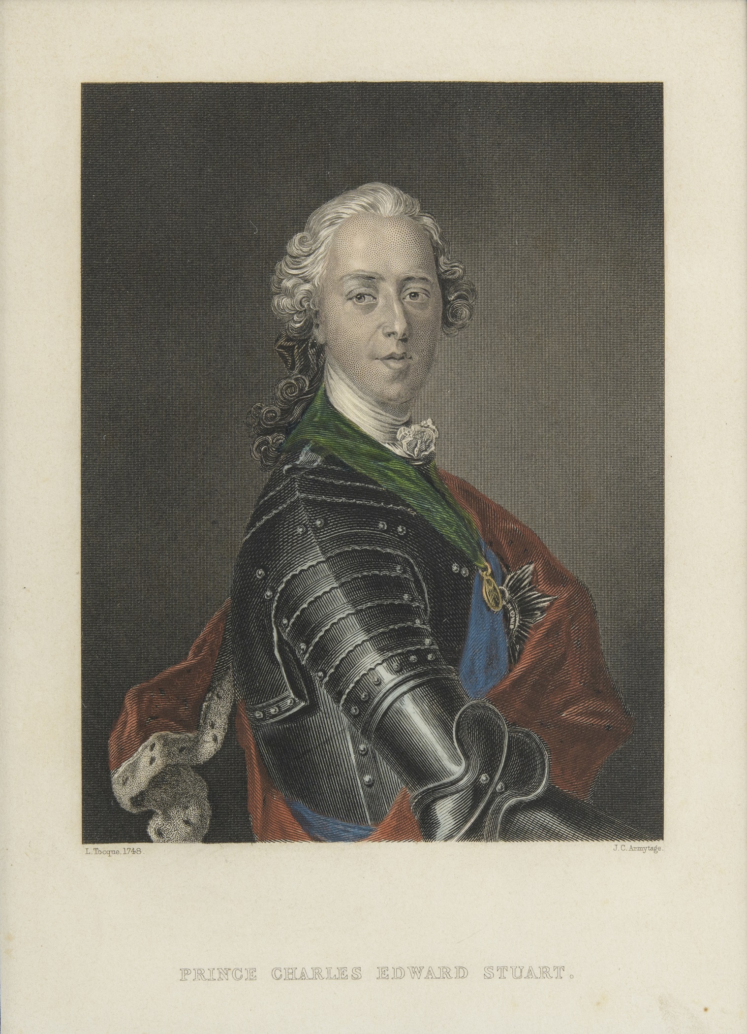 The engraving shows Charles twelve years before his death on 31 January 1788. In the last years of his life, he formally recognised his illegitimate daughter Charlotte by Clementina Walkinshaw, made her his heir and bestowed upon her the title of Duchess of Albany, an honour traditionally reserved for the heirs of Kings of Scotland. A year later, in 1784, he then asked her to come from Paris and live with him in Florence, and from the end of 1785 at the Palazzo del Re in Rome.