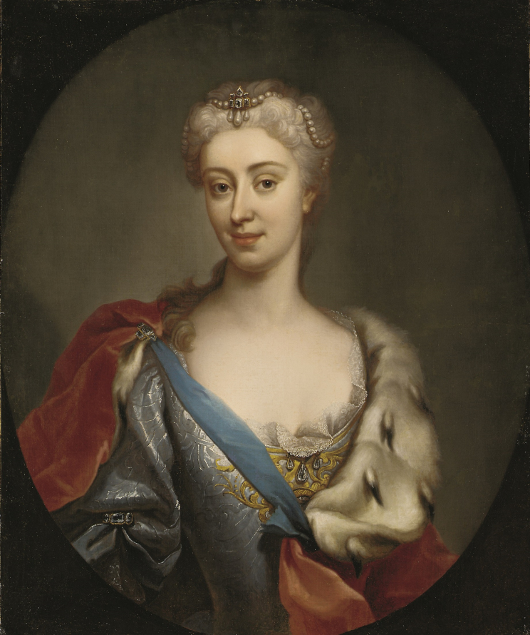 David painted his copy of the portrait of Clementina in 1730. However, from 1725 onwards her health and mental condition had deteriorated as a result of a prolonged conflict with her husband and his principal courtiers. The artist had been court painter to James III/VIII since 1717 and known Clementina since her arrival in Rome in 1719. In this copy of 1730 he restored the queen to her former beauty.